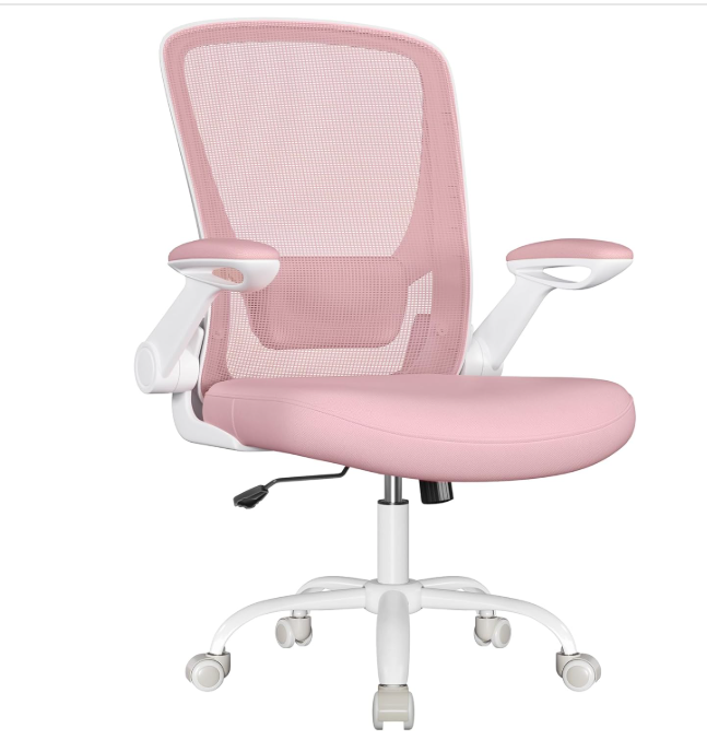 Work comfortably and stylishly with the SONGMICS Ergonomic Fabric Office Chair, designed to provide optimal support, comfort, and flexibility for long hours at your desk. Featuring padded lumbar support, a wide 53cm seat, and folding armrests, this chair combines practicality with a fun and vibrant candy pink color.