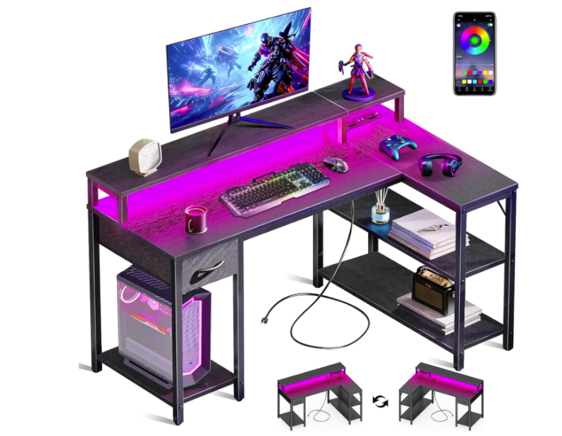 50-Inch Gaming Desk – RGB Lighting, Power Outlet & Reversible L-Shaped Design